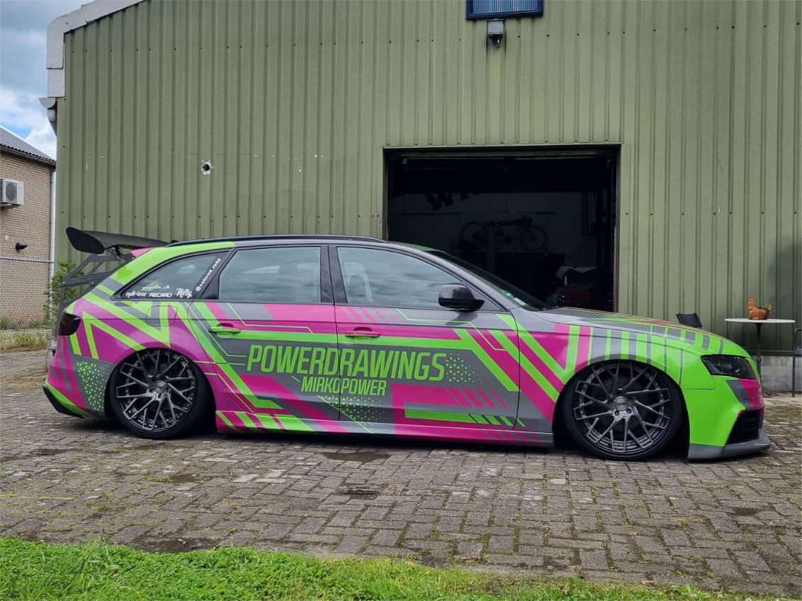 Dylan mit seinem Audi A4 Avant im RS Look auf Luft im POWERDRAWINGS-Design.