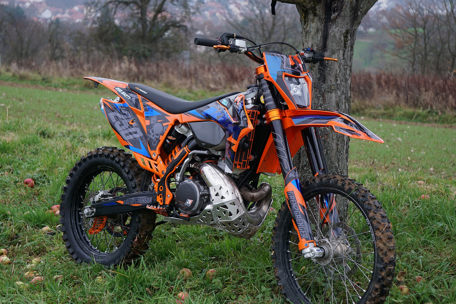 Basti mit seiner KTM EXC 300 im selbst erstellen Design inklusive POWERDRAWINGS-Logo.