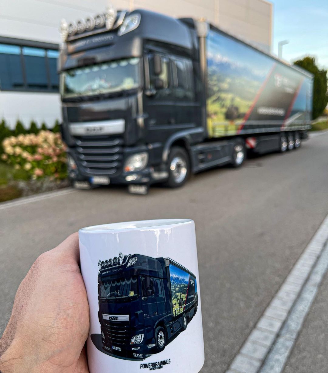 Nun gibt's dein Fahrzeug nicht nur an der Wand, sondern auch auf dem Schreibtisch. Hol dir ein paar extra Tassen von deinem POWERDRAWING - Garantiert jeden Morgen eine Freude!